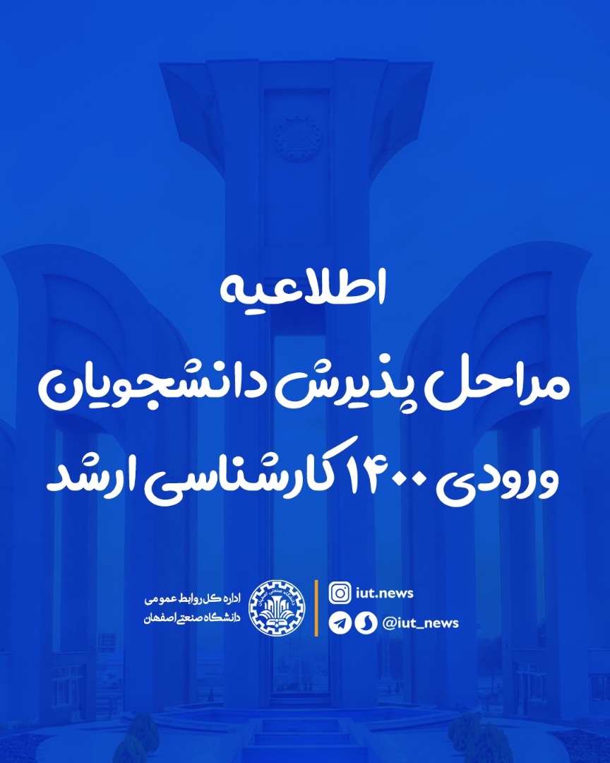 اطلاعيه پذیرفته شدگان آزمون کارشناسی ارشد سال 1400 دانشگاه صنعتی اصفهان