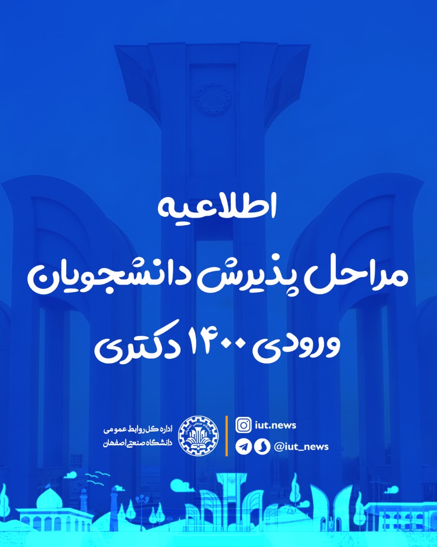 اطلاعیه ثبت نام پذیرفته شدگان آزمون دکتری سال 1400 دانشگاه صنعتی اصفهان