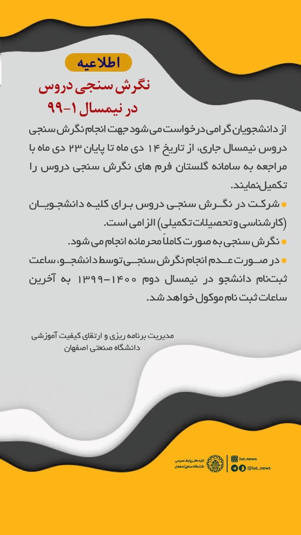 اطلاعیه نگرش سنجی دروس در نیمسال 1-99