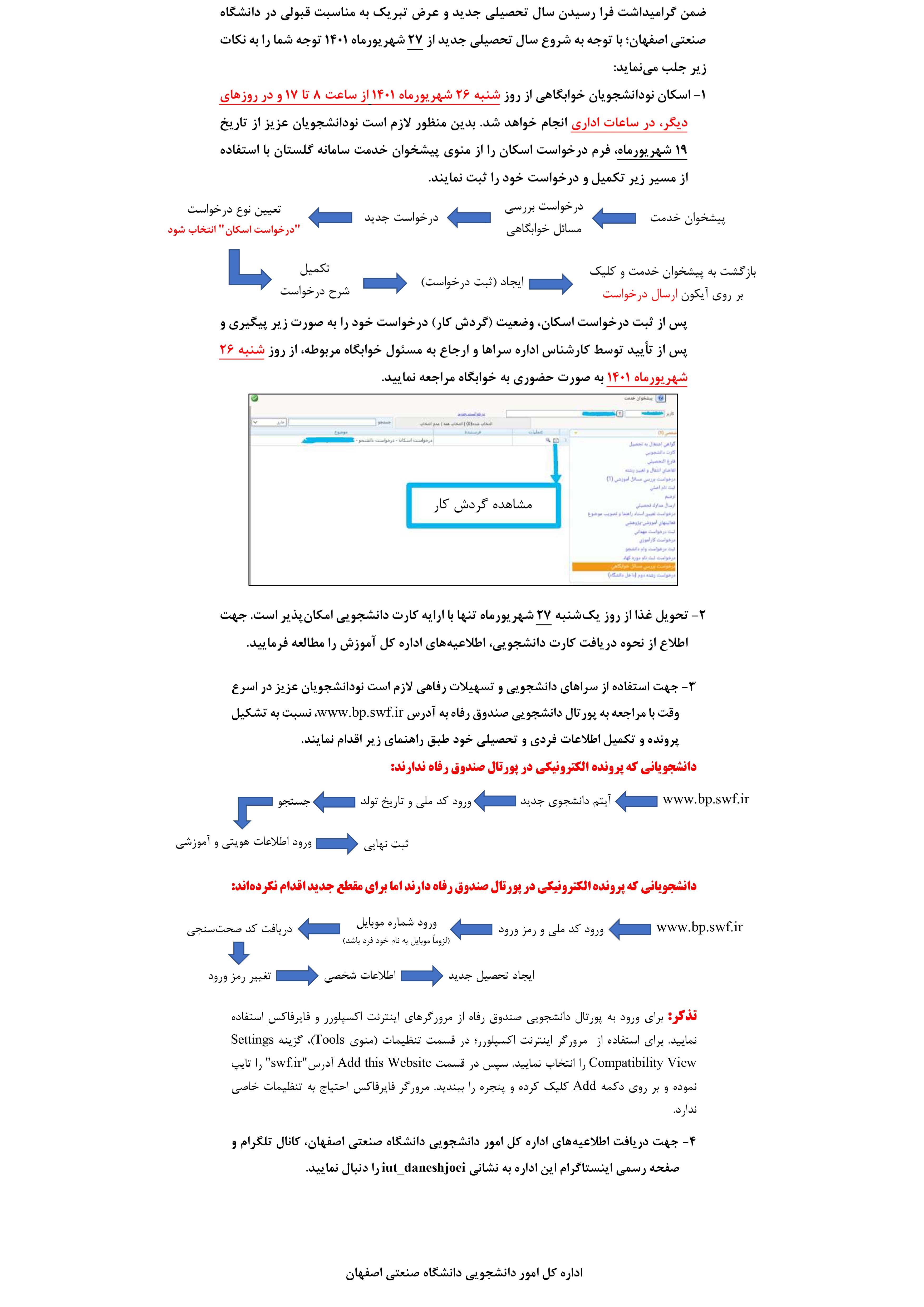 اطلاعیه اسکان و تغذیه دانشجویان ورودی 1401-1402