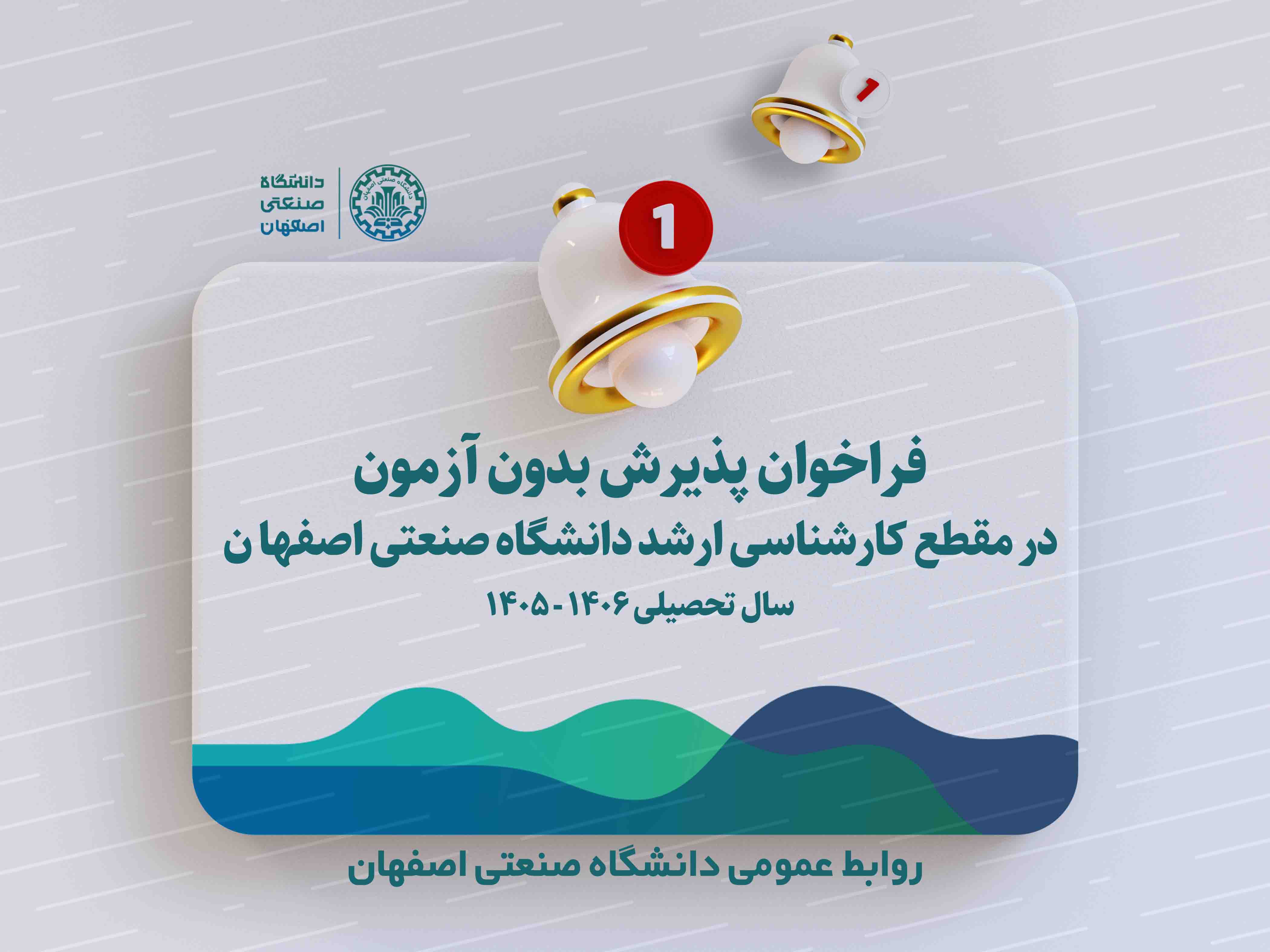 فراخوان پذیرش بدون آزمون در مقطع کارشناسیارشد دانشگاه صنعتی اصفهان سال تحصیلی ۱۴۰۶ - ۱۴۰۵