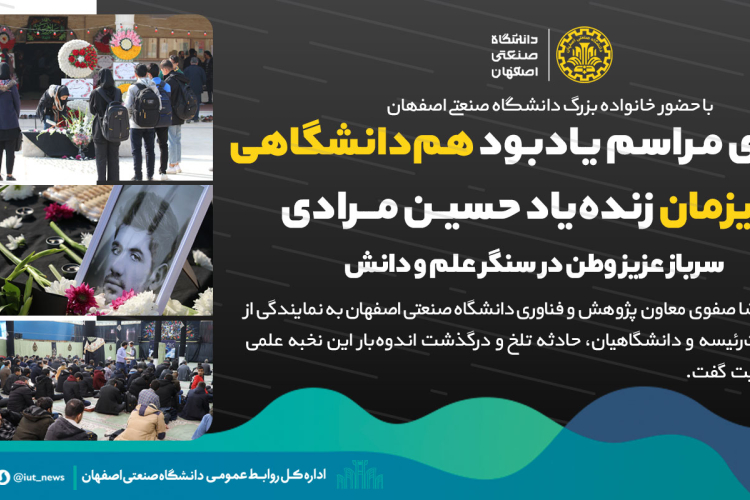 پیام تسلیت رییس دانشگاه صنعتی اصفهان در پی درگذشت ناگوار استاد دانشگاه شادروان دکتر بهنام فر 1404-12-01 · داخلی
