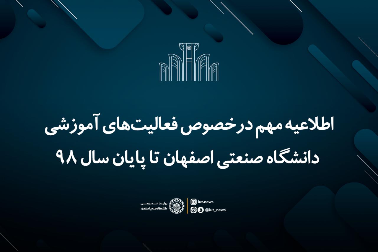 اطلاعيه مهم درخصوص فعالیت‌های آموزشی دانشگاه صنعتی اصفهان تا پایان سال 98