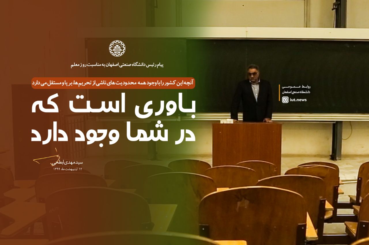پیام دکتر سید مهدی ابطحی رئیس دانشگاه صنعتی اصفهان به مناسبت سالروز بزرگداشت مقام معلم