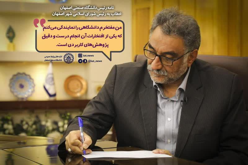نامه دکتر سید مهدی ابطحی رئیس دانشگاه صنعتی اصفهان خطاب به رئیس شواری اسلامی شهر اصفهان