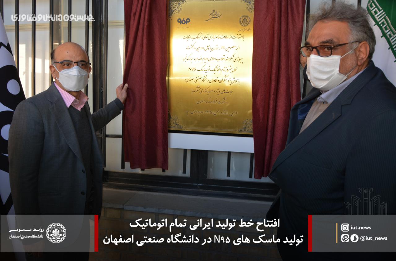 با تلاش پژوهشگران و فناوران دانشگاه صنعتی اصفهان و با حمایت شرکت فولاد مبارکه اصفهان، خط پیشرفته تمام اتوماتیک تولید ماسکهای 95N طراحی، ساخت و پیش از ظهر امروز پنج شنبه 16 بهمن ماه به بهره برداری رسید.