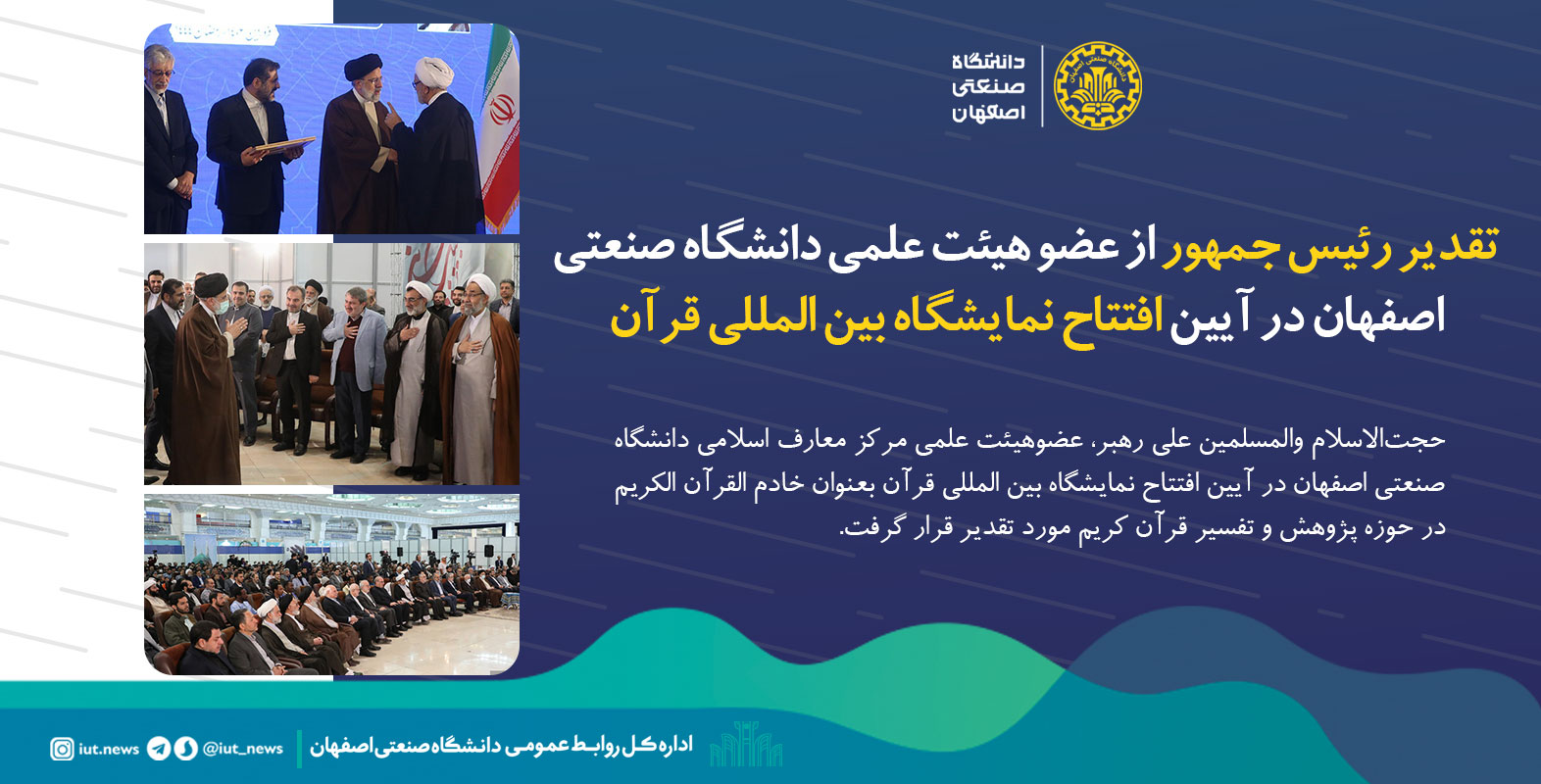 تقدیر رئیس جمهور از عضو هیئت علمی دانشگاه صنعتی اصفهان در آیین افتتاح نمایشگاه بین المللی قرآن