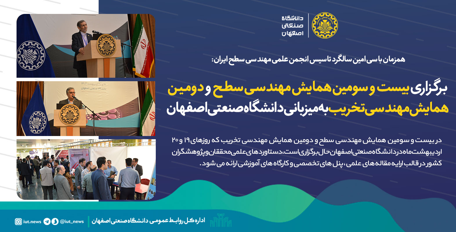 برگزاری بیست و سومین همایش مهندسی سطح و دومین همایش مهندسی تخریب به میزبانی دانشگاه صنعتی اصفهان