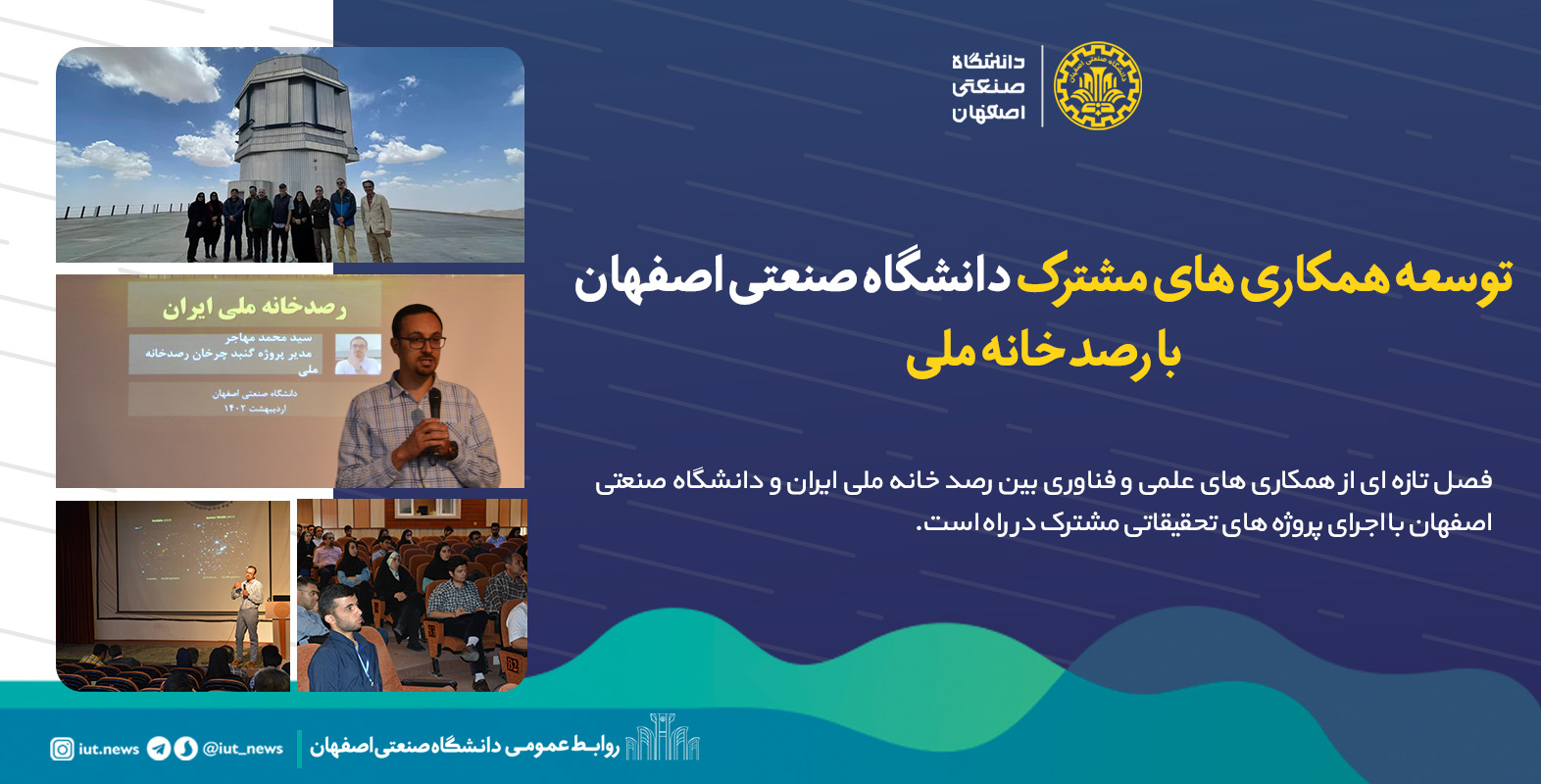 فصل تازه ای از همکاری های علمی و فناوری بین رصد خانه ملی ایران و دانشگاه صنعتی اصفهان با اجرای پروژه های تحقیقاتی مشترک در راه است.