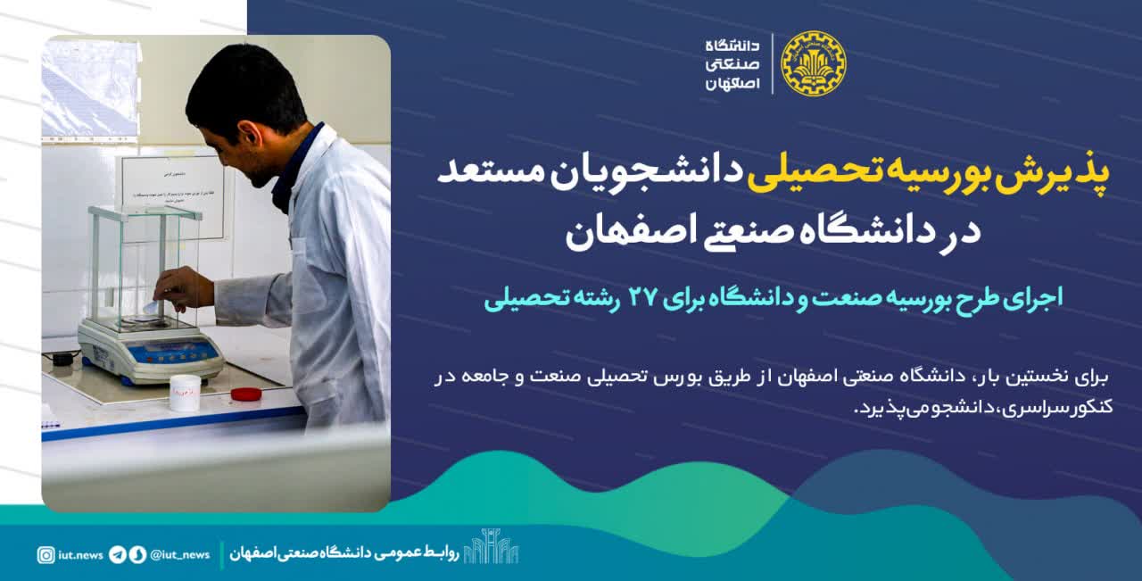 براساس این طرح، داوطلبان، 5 درصد رتبه‌های برتر گروه‌های آزمایشی علوم ریاضی و تجربی در دانشگاه صنعتی اصفهان می‌توانند، ادامه تحصیل از طریق بورس تحصیلی در رشته‌های علوم پایه و کشاورزی را انتخاب کنند.