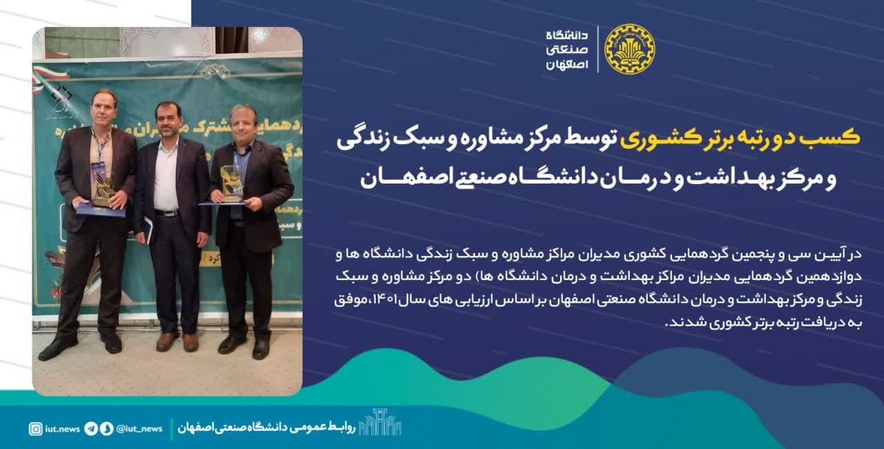 کسب دو رتبه برتر کشوری توسط مرکز مشاوره و سبک زندگی و مرکز بهداشت و درمان دانشگاه صنعتی اصفهان