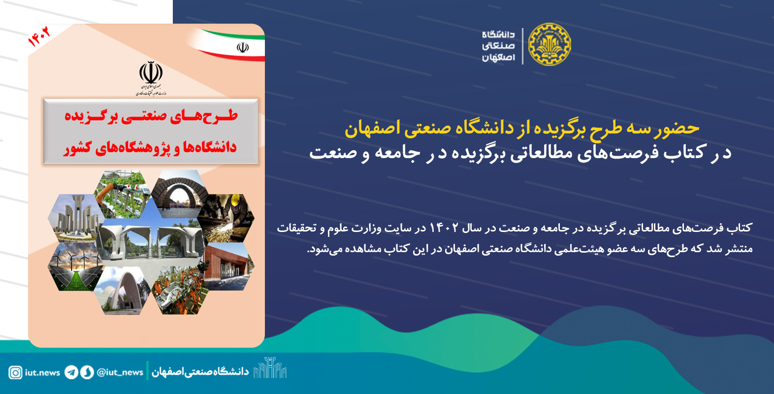 حضور سه طرح برگزیده از دانشگاه صنعتی اصفهان در کتاب فرصت‌های مطالعاتی برگزیده در جامعه و صنعت