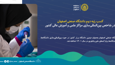 کسب رتبه دوم دانشگاه صنعتی اصفهان در شاخص بینالمللیسازی مراکز علمی و آموزش عالی کشور