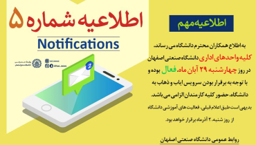 فعال بودن كليه واحدهاي اداري دانشگاه صنعتي اصفهان در روز چهارشنبه 29 آبان ماه