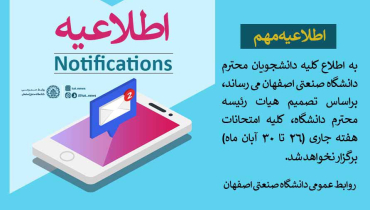 اطلاعيه لغو امتحانات 26 تا 30 آبان ماه در دانشگاه صنعتي اصفهان